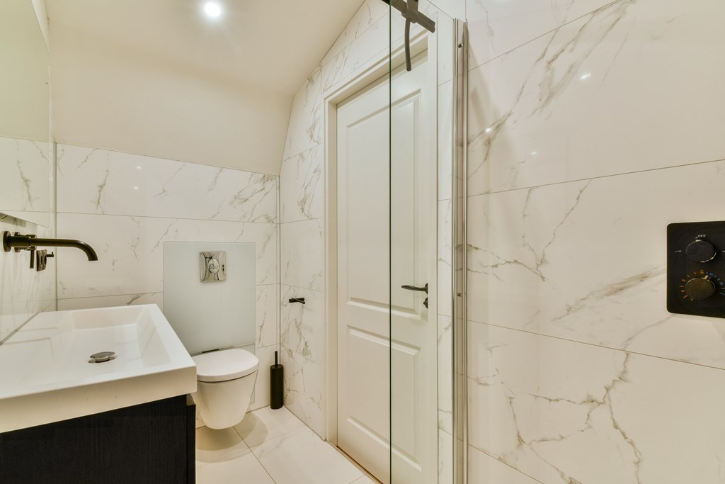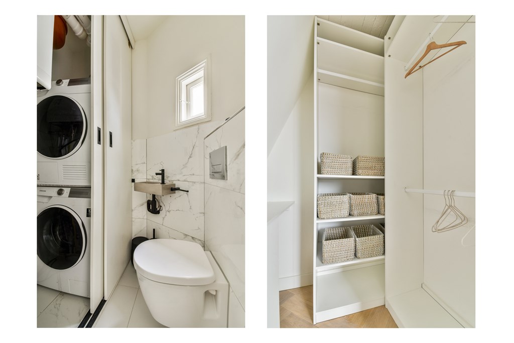 Via de elegante interne trap bereikt u de vierde verdieping, waar zich een zeer royale master bedroom bevindt, voorzien van een maatwerk inbouwkast en een prachtige, moderne badkamer met een luxueuze uitstraling. Vanuit deze verdieping heeft u toegang tot het absolute pronkstuk van de woning: een zonnig dakterras van bijna 20 m², waar u in alle rust kunt genieten van de zon, de skyline van Amsterdam en het indrukwekkende uitzicht over de stad.