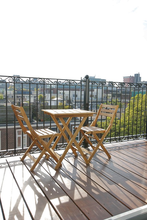 De bovenste verdieping is geheel open en heeft fantastische kenmerken: een moderne complete keuken met volledige apparatuur. Geweldige open haard (gas), veel ramen. Deze verdieping heeft een verbazingwekkende hoeveelheid natuurlijk licht. Aan de achterzijde bevindt zich een groot terras op het zuiden dat een echte uitbreiding is van het woonoppervlak en een uitzonderlijk uitzicht heeft over de stad Amsterdam.