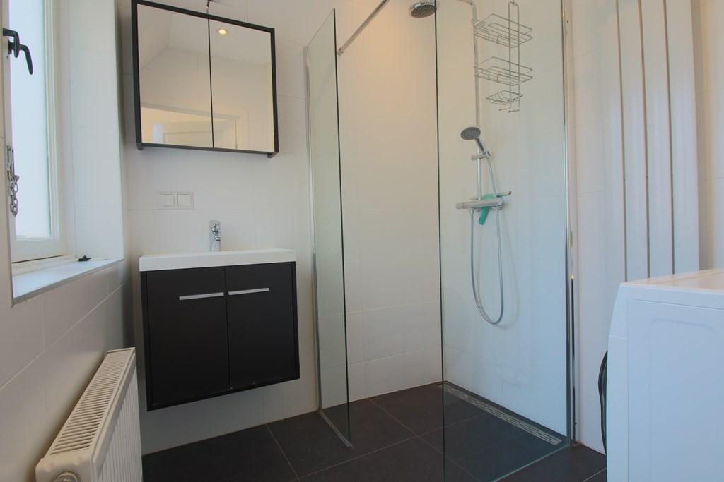 Via de trap in de hal bereik je de bovenste verdieping. Hier vind je opnieuw een gezellige woonkamer met een open keukentje, een badkamer met douche en toilet, en een slaapkamer aan de achterzijde. Dankzij deze slimme indeling kunnen beide verdiepingen als zelfstandige woonruimtes functioneren – perfect voor twee bewoners die samen willen wonen maar toch hun eigen plek willen behouden.