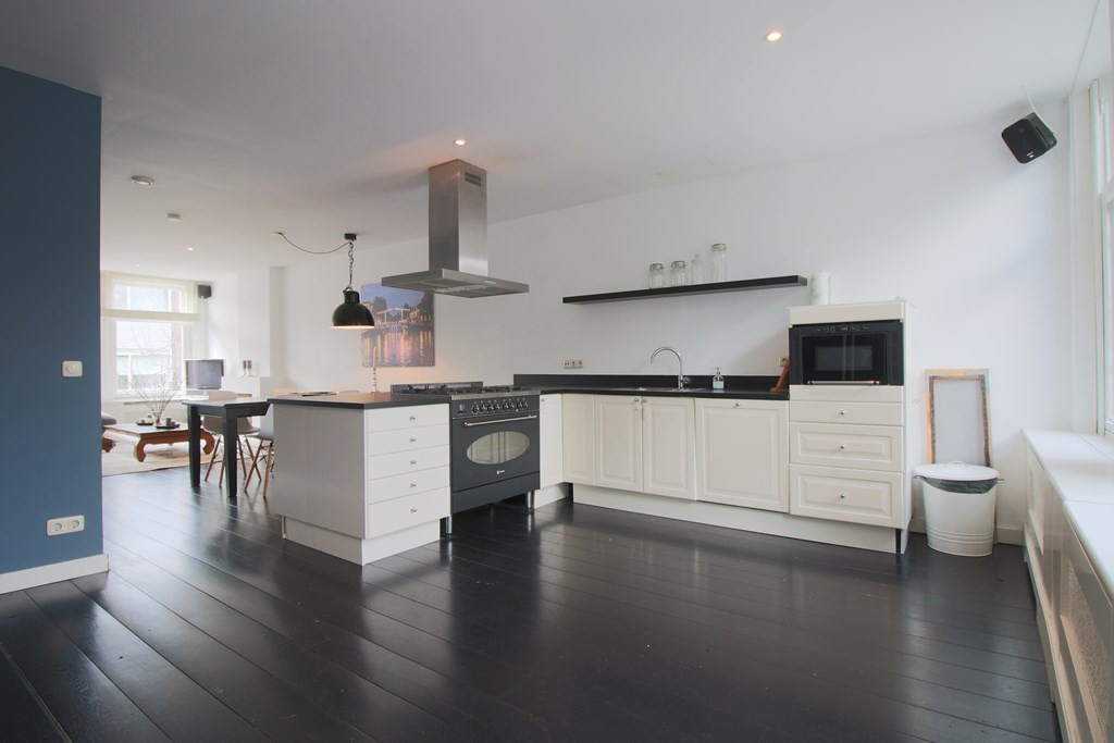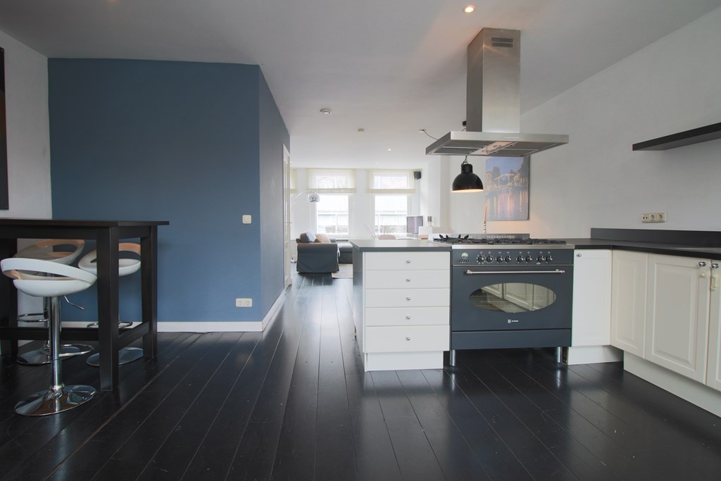 Via de entree op de 2e verdieping bereikt u de ruime en opvallend lichte woonkamer op de 3e verdieping. Hier creëren de open haard, grote eettafel en sfeervolle inrichting een warme en uitnodigende sfeer. De open keuken is volledig uitgerust met moderne apparatuur, waaronder een 6-pits gaskookplaat, groot fornuis, magnetron en een royale Amerikaanse koelkast – ideaal voor kookliefhebbers. Op deze verdieping bevindt zich tevens een separaat toilet.